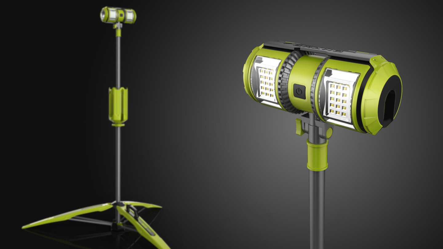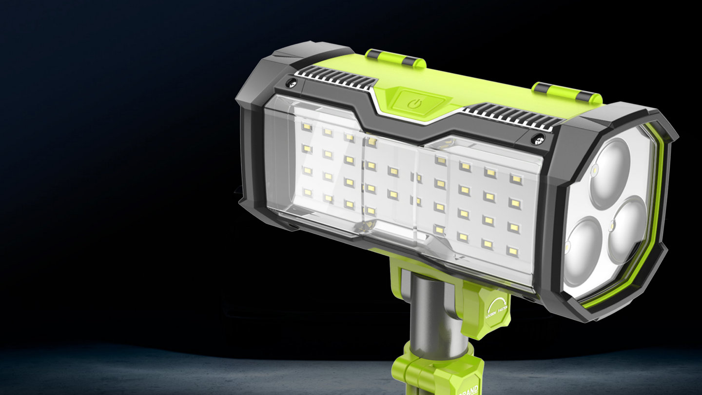 以兰博基尼作为设计灵感,双排灯珠的强大组合,可以提供面积更大、视野更舒适的工作视线。底部螺旋支架口设计可与三脚架连接使用。一体式密封设计,让用户在户外也能无惧风雨。
