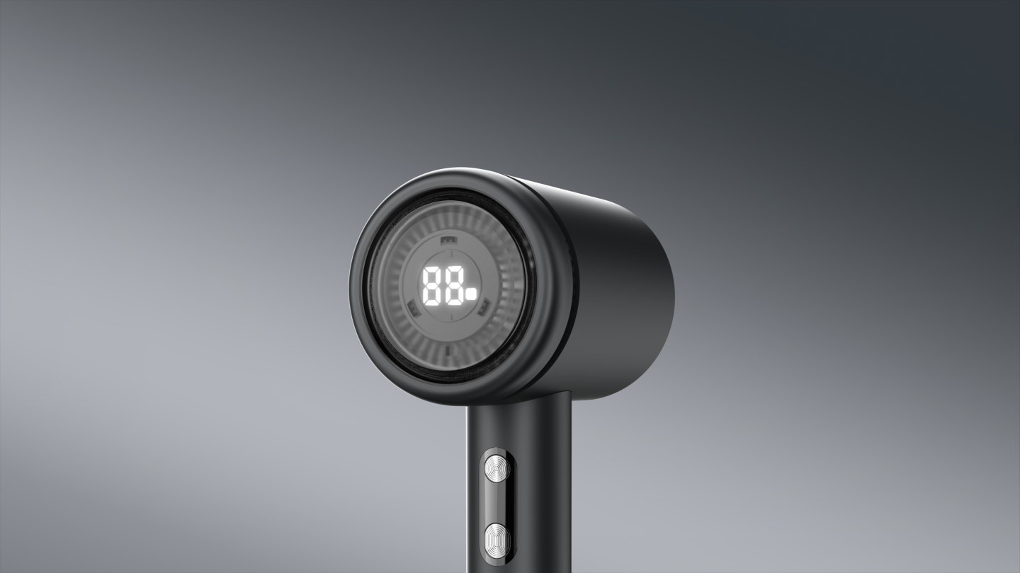 这是一款高速吹风机,该设计采用超大显示屏和多功能触摸开关,给用户带来全新的科技体验。