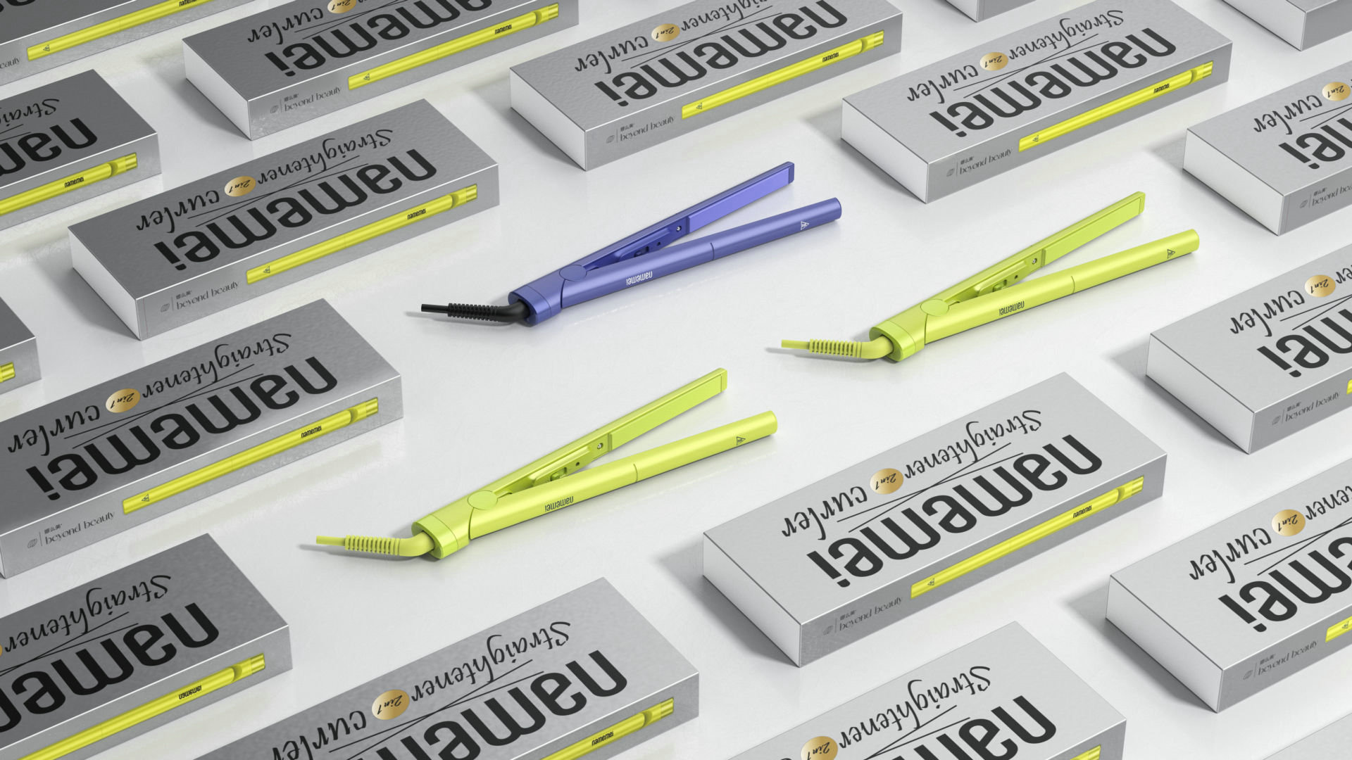 “打破常规,成就美丽——namemei,你的私人美发师。” 多功能直发器,几何化的极简外观设计,符合年轻一代的审美趋向,SPARK为其定义的超长加热区域,可以提升40%的烫发效率。内置负离子护发技术,精油涂层,减少发质损伤。圆形的机身,达到直发、卷发双重功能。